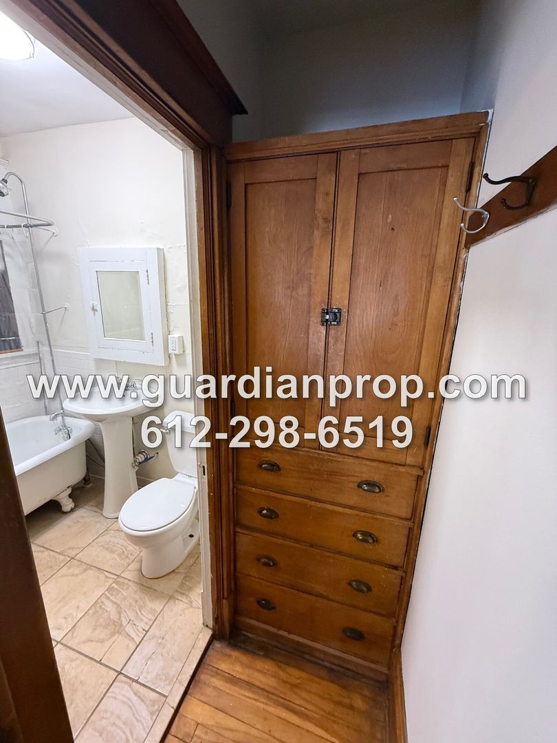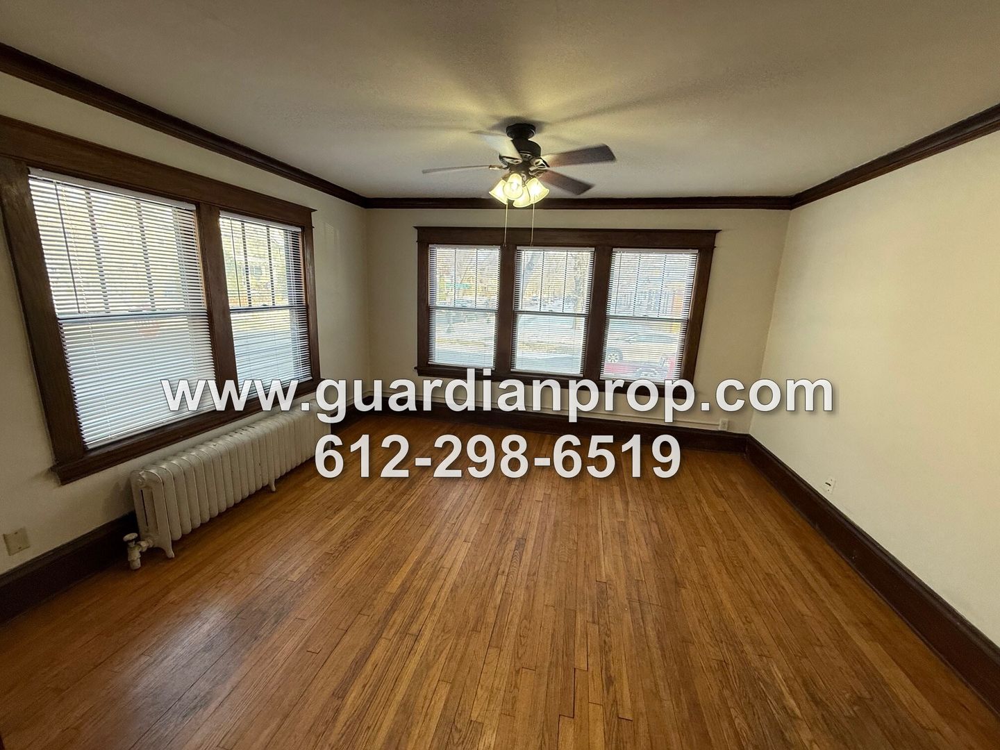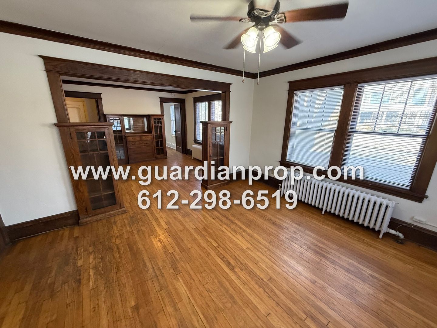 Top floor apartment available now in Mac Groveland. There's a full dining room that's open to the living room. There are hardwood floors with built-in cabinets. Bright corner unit with lots of windows. The bedroom is a good size. Full bathroom with clawfoot tub and extra storage.