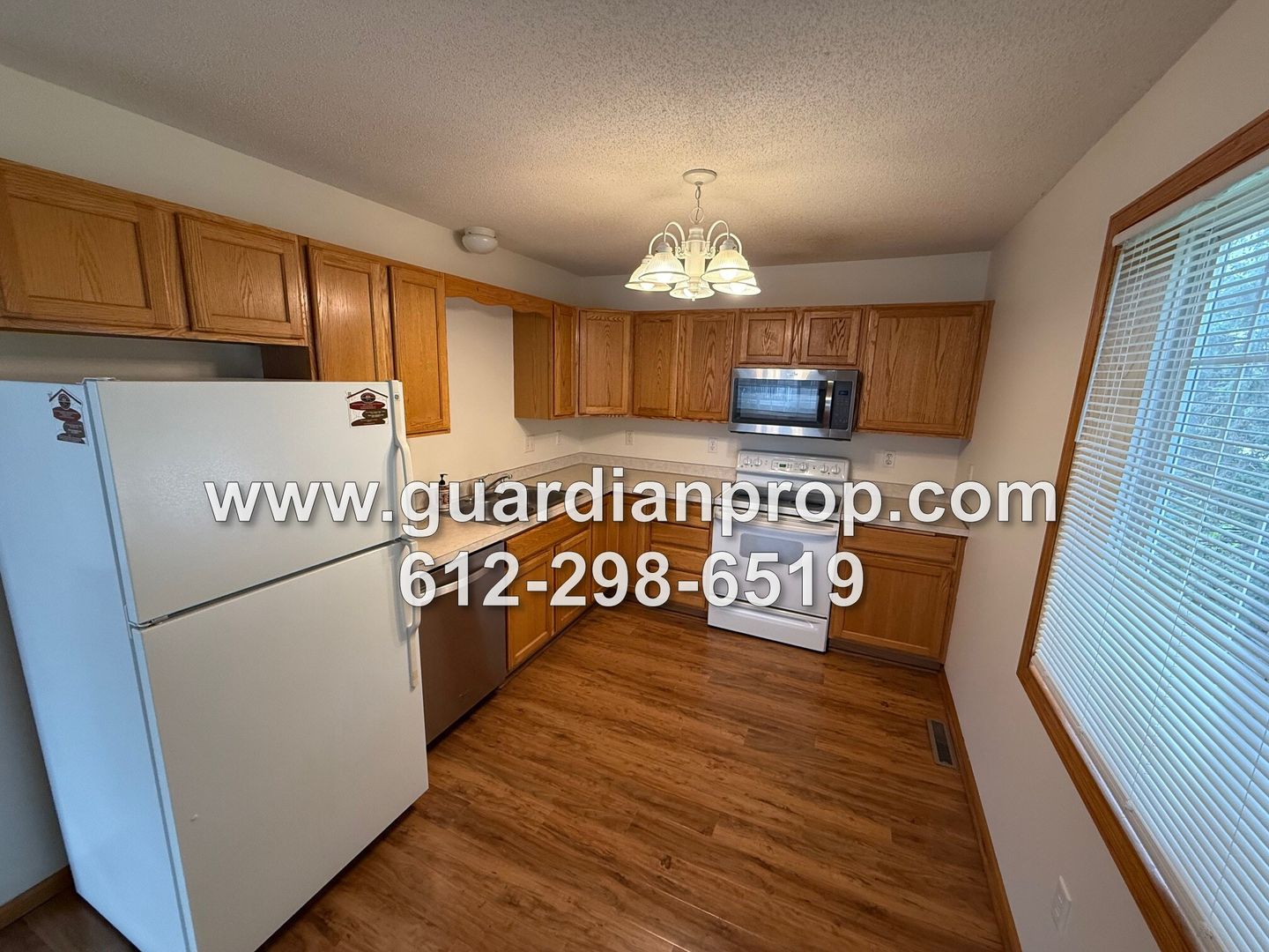 End unit townhouse available now in Woodbury. The main level has an open floor plan between the living room, dining area, and kitchen. There's updated flooring throughout and a walkout to the balcony. There's also a full bathroom on the main level.