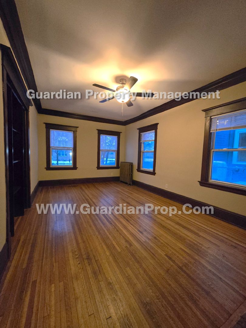 Situated on the 2nd floor, this unit has the classic hardwood floors throughout with a formal dining room and another living room with a decorative fireplace and other classic built-ins. The kitchen and bathroom have both been updated for modern living. Off the dining room is also a patio door to access your own large deck space and rear entrance.