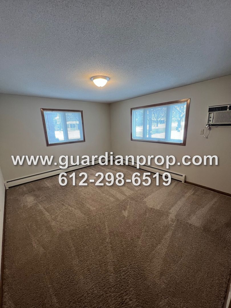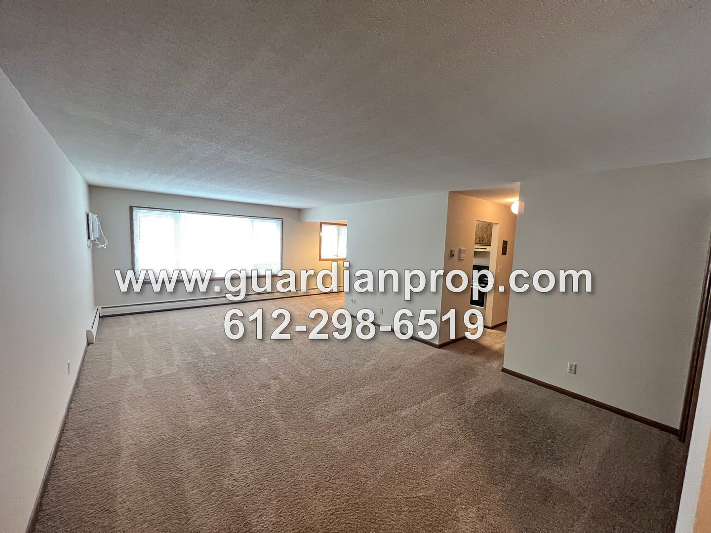 Second floor unit in Merriam Park available May 1st. Large open floor plan between the living room, dining area and kitchen. Both bedrooms are large and next to the full bathroom at the end of the hallway. Kitchen includes a dishwasher. There's an a/c unit in one of the bedrooms and the living room. This apartment has a ton of closet space - there's a coat closet at the entrance, walk-in closet in the living room, linen closets and a large storage closet in the bathroom.