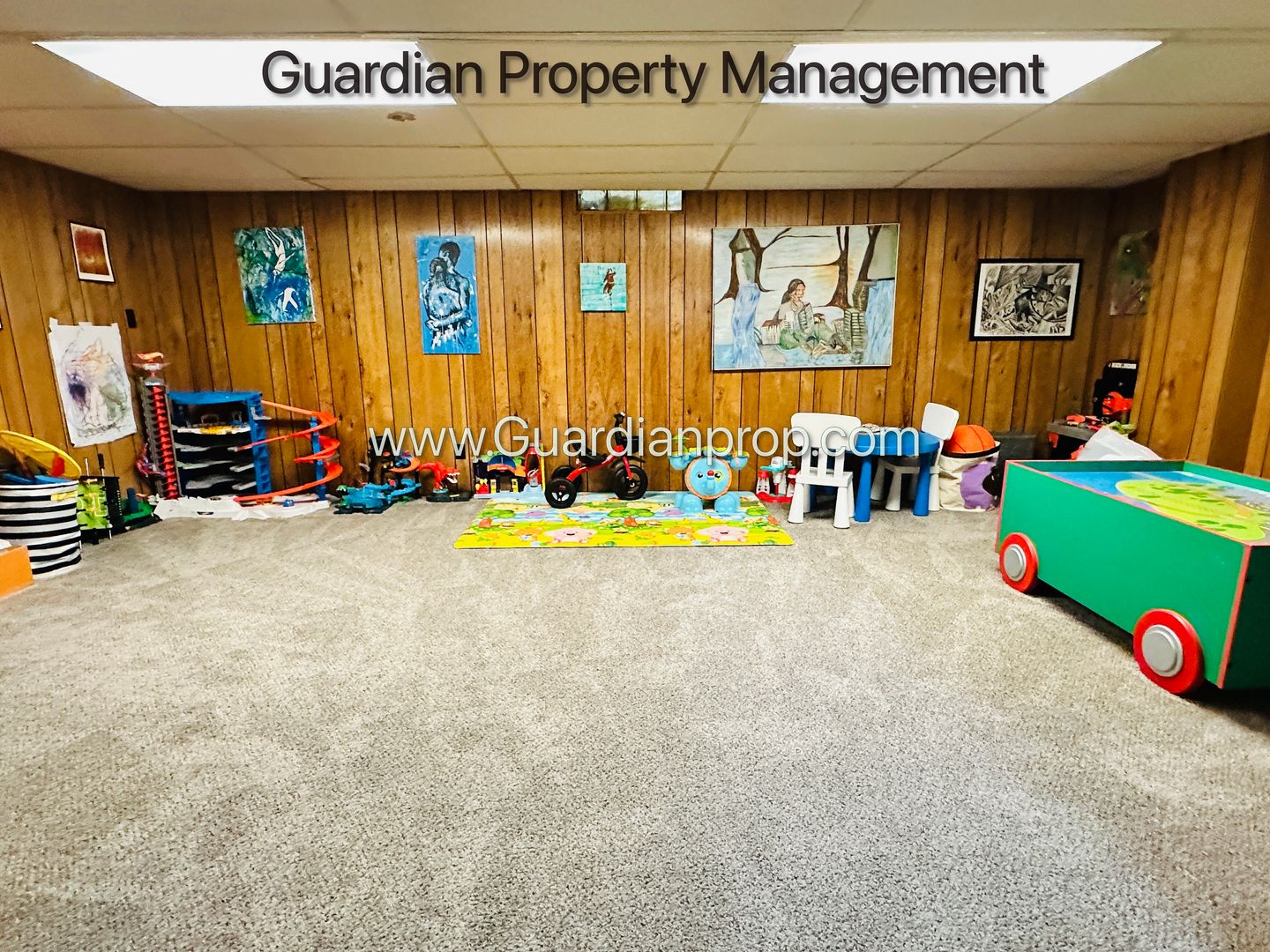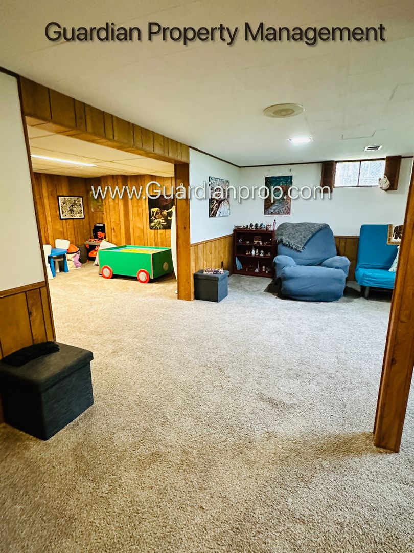 Downstairs you have laundry, 3/4 bath, and a very large family room/rec area. Laundry and storage are located off the hallway leasing to the bathroom.