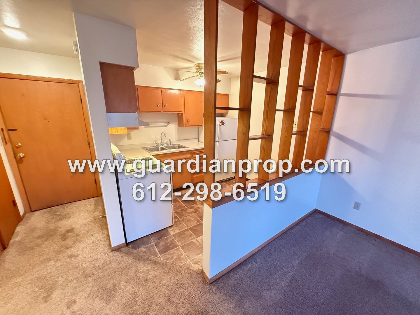 Second floor apartment in Roseville available now. Open floor plan between the living room, dining area and kitchen. There's a walkout to the balcony that overlooks the private back yard area. Built-in a/c in the living room.