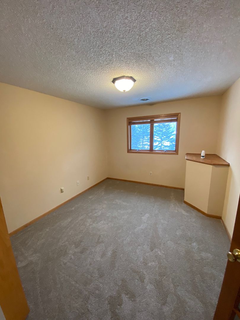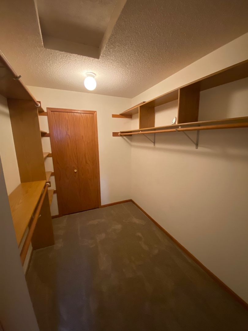 Top floor corner condo (2nd floor) in small building available March 1 in Inver Grove Heights. Open floor plan with carpeted flooring throughout. The kitchen has black appliances, and there's a small breakfast bar. The first bedroom has French doors and is across from the full bathroom in the hallway. The primary bedroom has it's own 3/4 bathroom and a large walk-in closet. Both bathrooms have updates including granite topped vanities. This unit also has it's own washer/dryer, fireplace and a large balcony. There's a single stall garage with power included in rent.