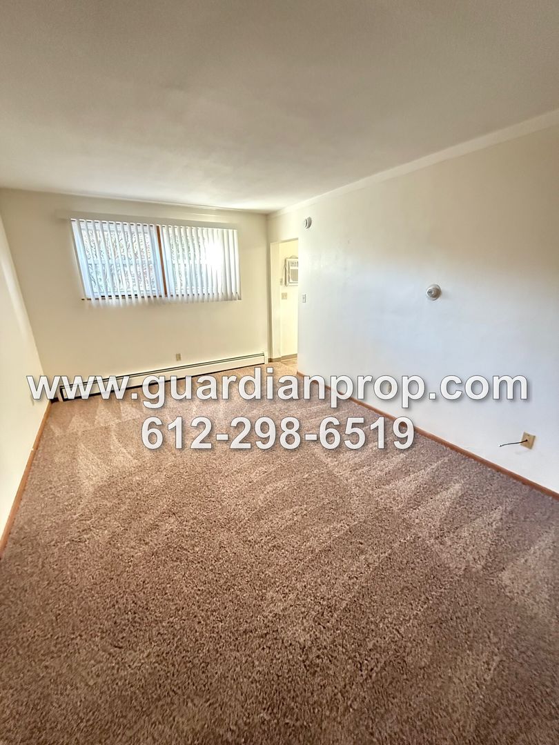 Bright garden level unit in White Bear Lake available now! New carpet in the living room and bedroom. Large bedroom with two closets and a ceiling fan. Built-in a/c unit between the living room and kitchen.